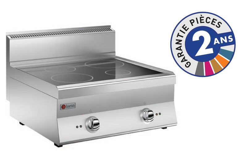 - Cette plaque de cuisson électrique en vitrocéramique de Baron fait parti de la Gamme 650, qui a été étudiée pour les professionnels ayant un problème de place dans leurs cuisines, mais ne voulant pas renoncer aux hautes prestations des appareils. Facile à nettoyer, simples à intégrer, c'est une concentration de prestations pour les espaces restreints. Un produit aux grandes possibilités et à haut rendement pour sa facile et rapide mise en marche. Une gamme d'appareil de cuisson modulaire entièrement construit en acier inox AISI 304 18/10, avec finition externe satinée, profondeur des appareils 650 mm et une construction en conformité avec la norme NF et aux normes européennes.