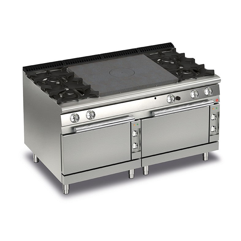 Fourneau - 4 feux vifs gaz + Plaque coup de feu sur 2 fours électriques - Gamme QUEEN 700 - Baron