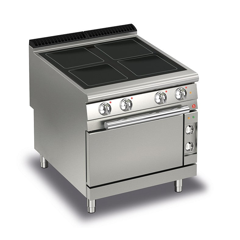 Fourneau plaque vitrocéramique sur four électrique - 4 foyers radiants - Gamme Queen 900 - 90QPCFVCE800 - Baron
