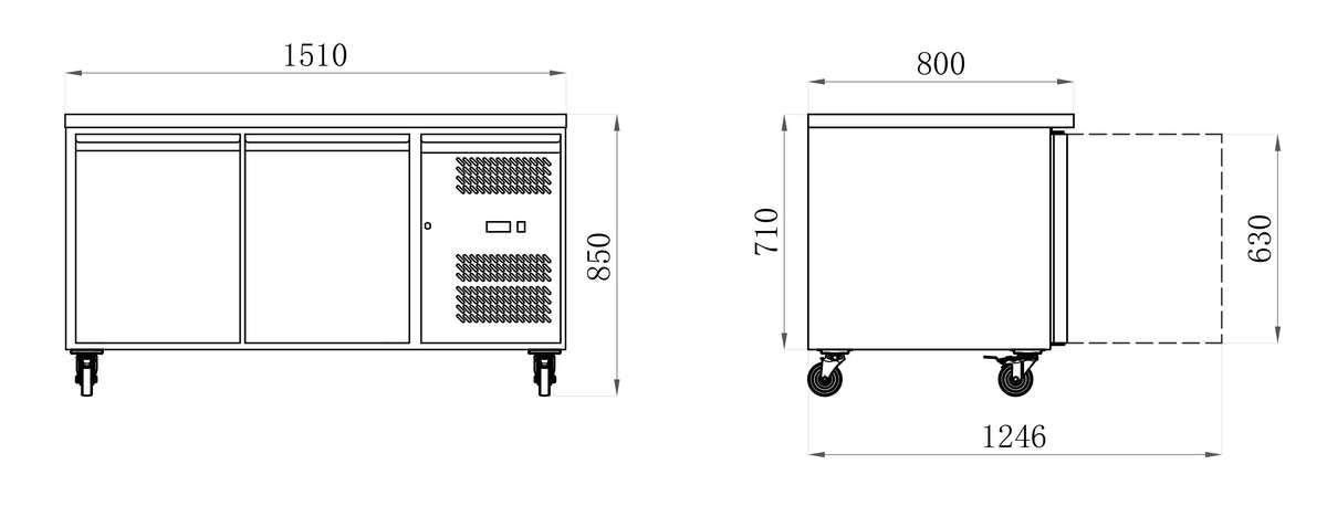 Dimensions (L x P x H) : 1510 x 800 x 850 mm