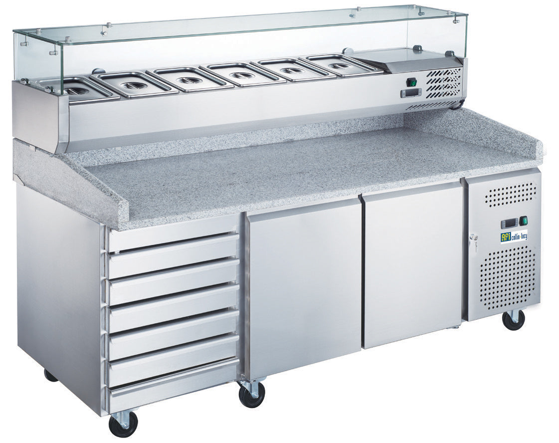 TABLE À PIZZA RÉFRIGÉRÉE AVEC VITRINE - POSITIVE - PROF 800 - 2 PORTES + 7 TIROIRS