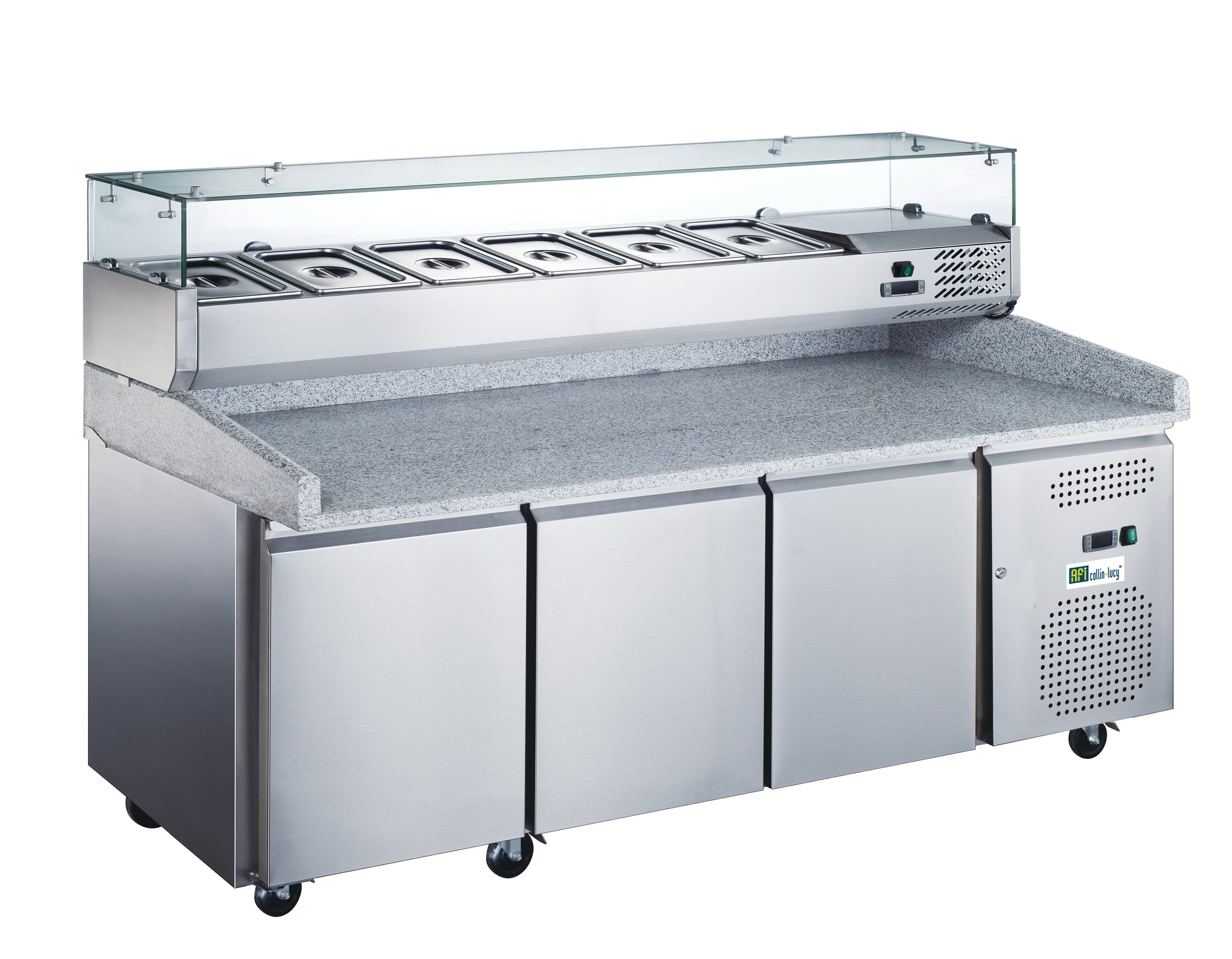TABLE À PIZZA RÉFRIGÉRÉE AVEC VITRINE - POSITIVE - PROF 800 - 3 PORTES