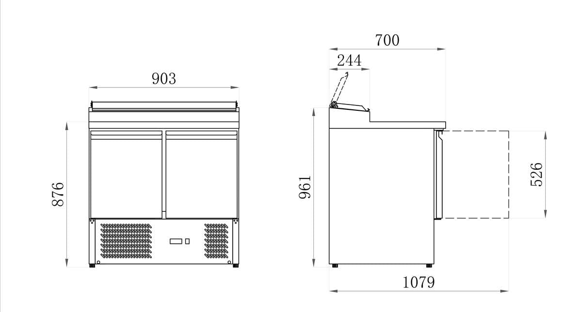 Dimensions (L x P x H) : 903 x 700 x 961 mm