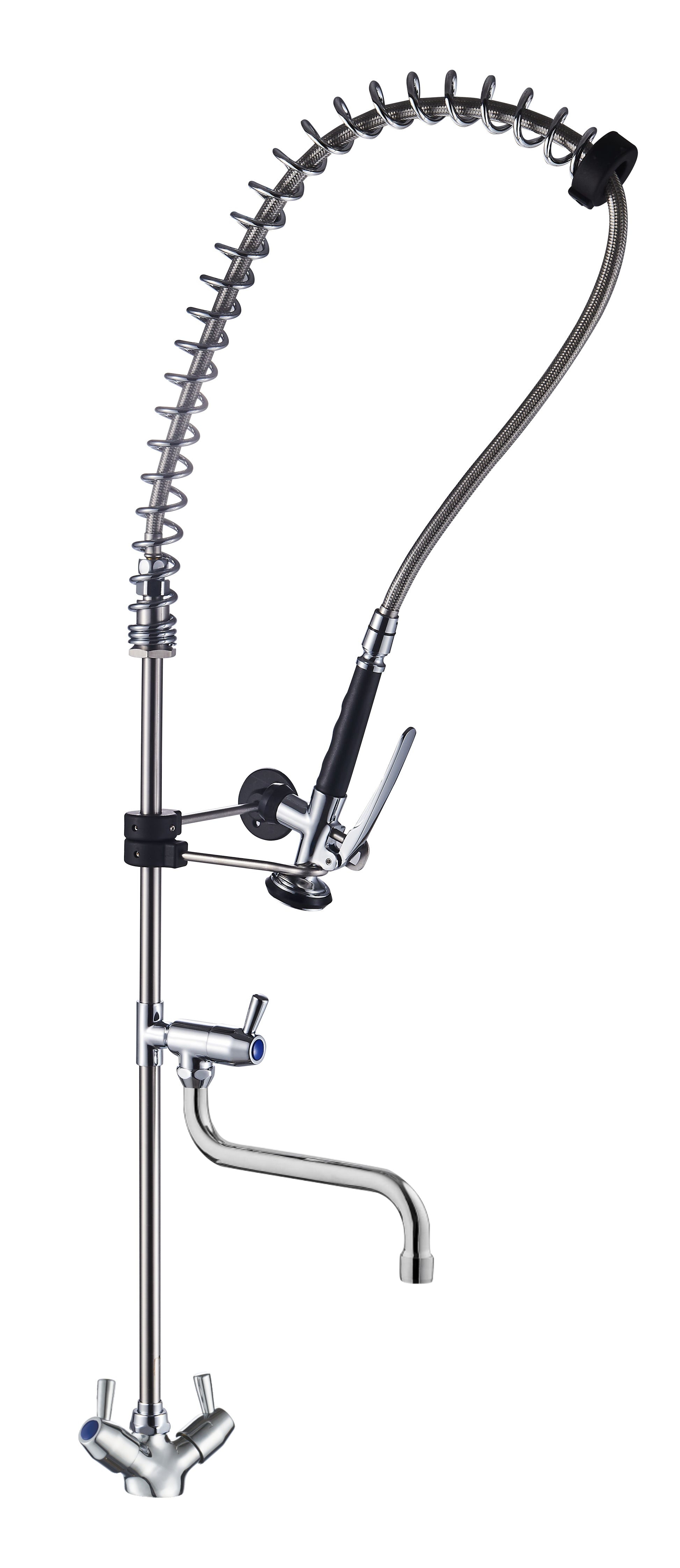 Modèle à poser sur plonge Douchette monotrou avec embout mâle 1/2" Mélangeur 1/4 de tour Col de cygne L-300mm H-376 mm Débit 7L/min à 3 bars Livré avec 2 tuyaux L-500 mm chaque tuyau