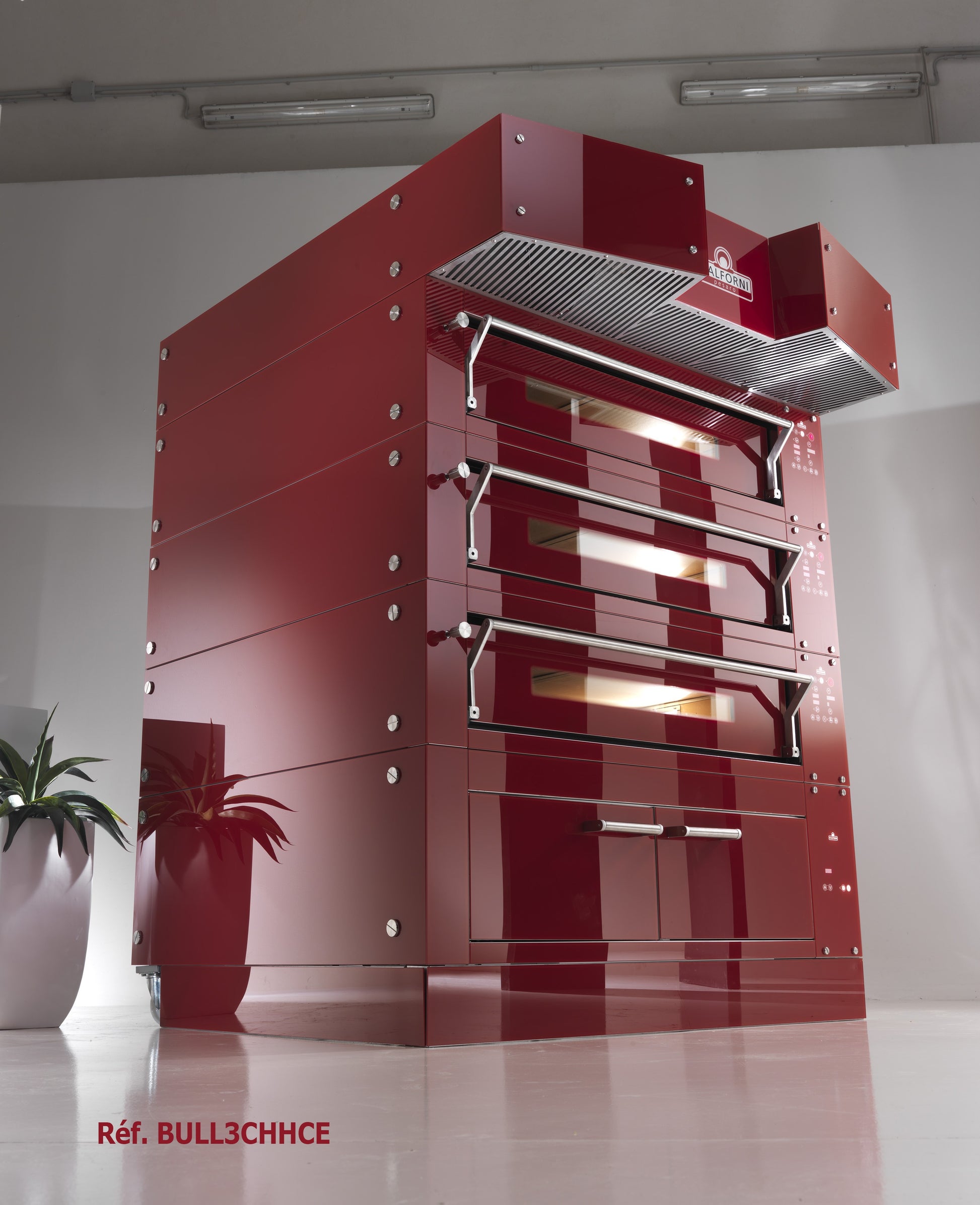 Description du Four à pizza avec support acier inox hauteur 500 mm - 3 chambres - 3 x 12 ou 3 x 9 pizzas - BULL3CHHSP - Italforni