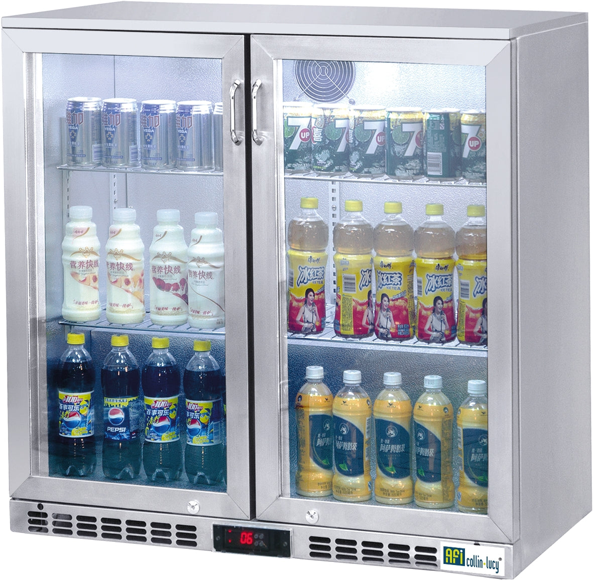 ARRIÈRE-BAR INOX - 2 PORTES VITRÉES BATTANTES