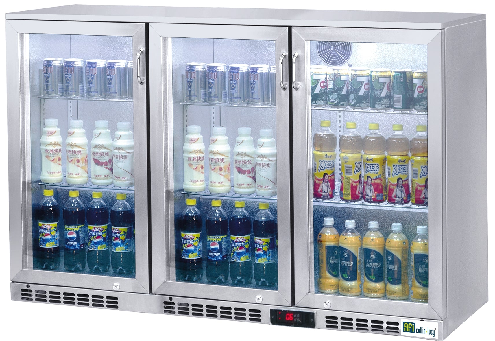 ARRIÈRE-BAR INOX - 3 PORTES VITRÉES BATTANTES