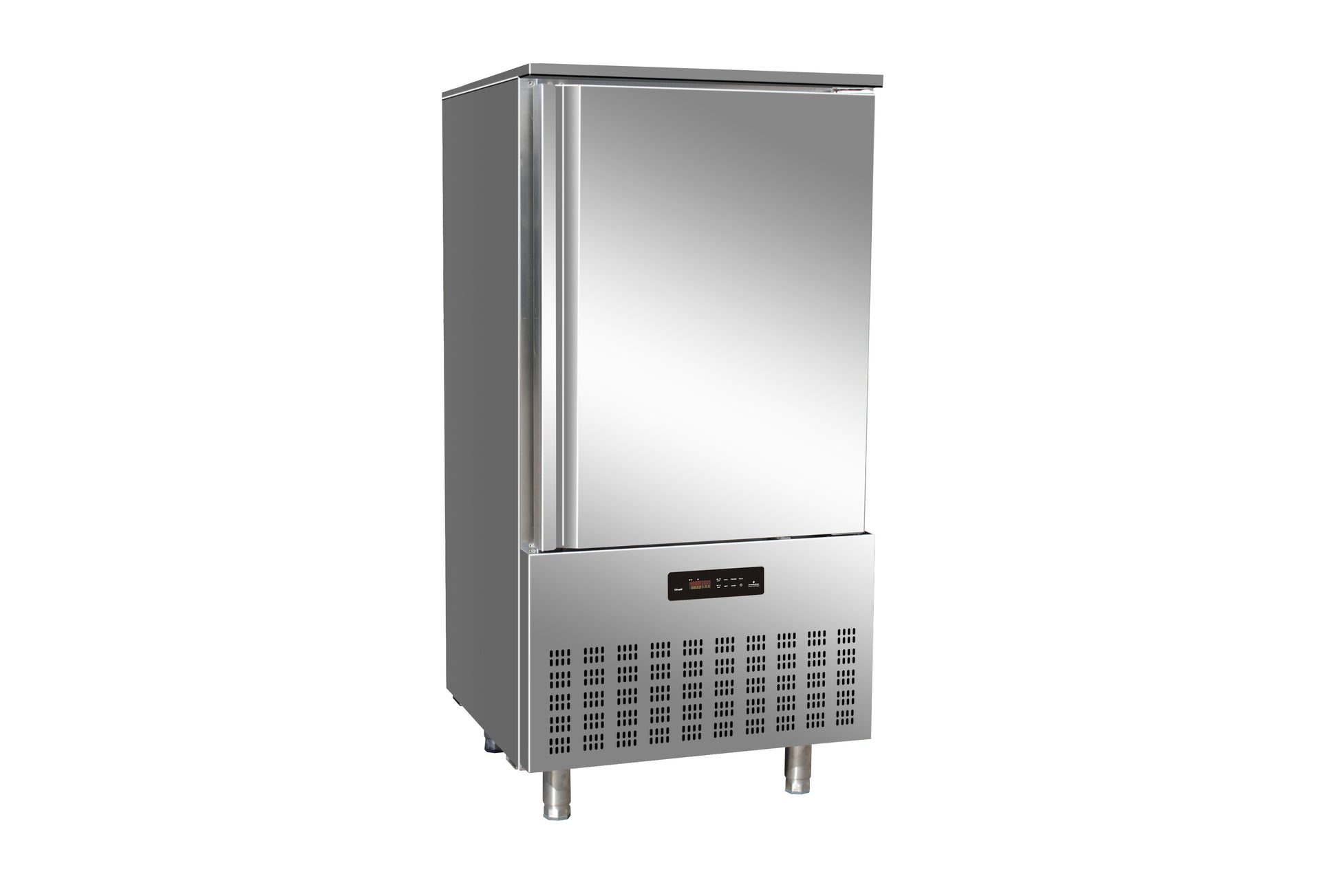 - Cette cellule de refroidissement et de congélation GN 1/1 à réfrigération ventilée avec construction tout inox AISI 304 18/10 et angles internes arrondis est dotée de 10 niveaux et a une capacité de refroidissement de 40 kg et une capacité de congélation de 28 kg. Elle est équipée d’origine d’une sonde à cœur, du dégivrage automatique, d'une porte équipée d’un cordon chauffant, d'une poignée ergonomique sur toute la hauteur, d'un groupe tropicalisé +38°C et un groupe avec condensation à air, d'une isolation de 70 mm avec un espacement entre les grilles de 70 mm, d'un thermostat électronique, d'un affichage digital, de 4 cycles programmables, d'une alarme sonore de fin de cycle, de pieds en inox réglables en hauteur et d'un passage automatique en mode conservation. Alimentation 230 V.