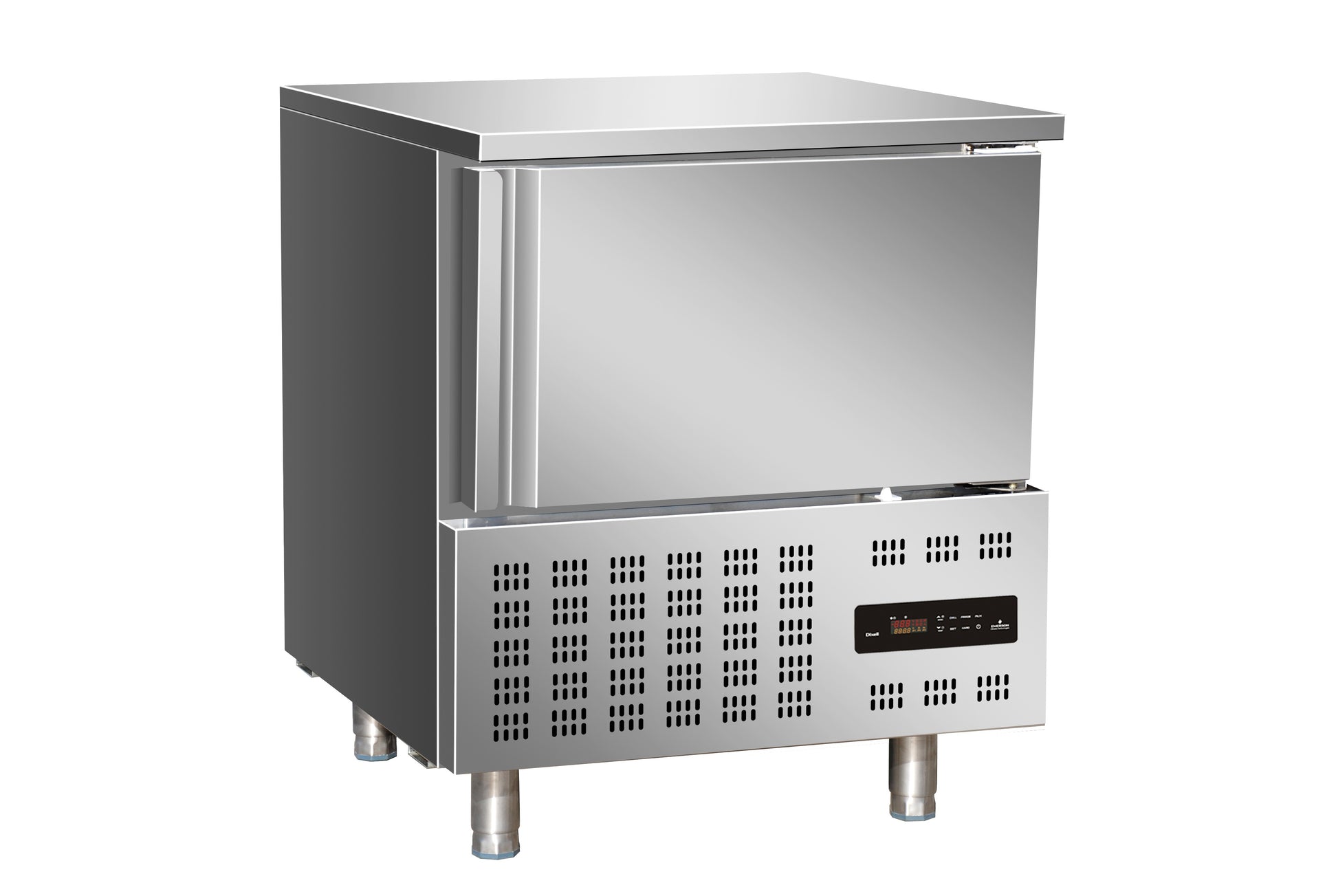 - Cette cellule de refroidissement et de congélation GN 1/1 à réfrigération ventilée avec construction tout inox AISI 304 18/10 et angles internes arrondis est dotée de 3 niveaux et a une capacité de refroidissement de 12 kg et une capacité de congélation de 8 kg. Elle est équipée d’origine d’une sonde à cœur, du dégivrage automatique, d'une porte équipée d’un cordon chauffant, d'une poignée ergonomique sur toute la hauteur, d'un groupe tropicalisé +38°C et un groupe avec condensation à air, d'une isolation de 70 mm avec un espacement entre les grilles de 70 mm, d'un thermostat électronique, d'un affichage digital, de 4 cycles programmables, d'une alarme sonore de fin de cycle, de pieds en inox réglables en hauteur et d'un passage automatique en mode conservation. Alimentation 230 V.