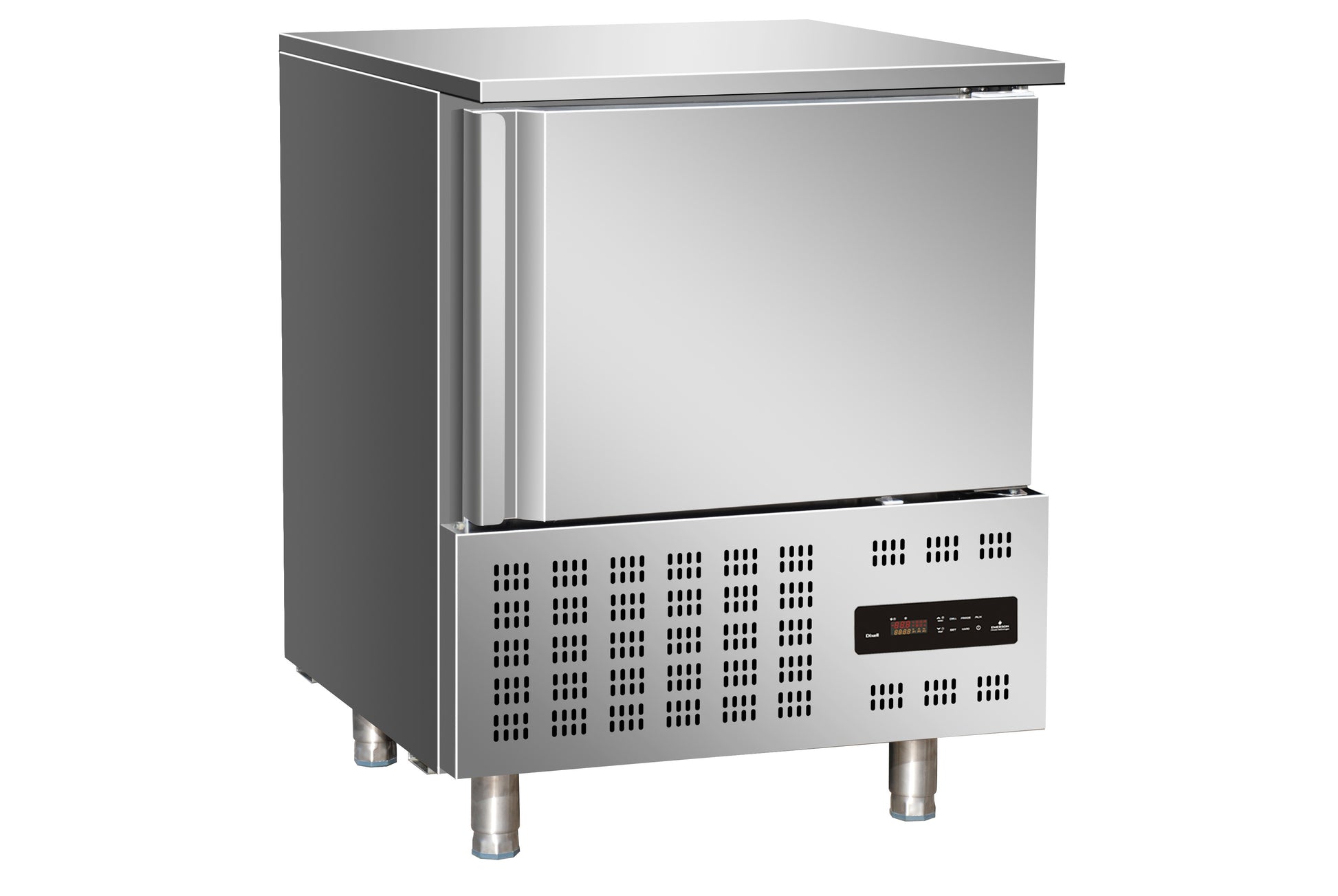 - Cette cellule de refroidissement et de congélation GN 1/1 à réfrigération ventilée avec construction tout inox AISI 304 18/10 et angles internes arrondis est dotée de 5 niveaux et a une capacité de refroidissement de 18 kg et une capacité de congélation de 14 kg. Elle est équipée d’origine d’une sonde à cœur, du dégivrage automatique, d'une porte équipée d’un cordon chauffant, d'une poignée ergonomique sur toute la hauteur, d'un groupe tropicalisé +38°C et un groupe avec condensation à air, d'une isolation de 70 mm avec un espacement entre les grilles de 70 mm, d'un thermostat électronique, d'un affichage digital, de 4 cycles programmables, d'une alarme sonore de fin de cycle, de pieds en inox réglables en hauteur et d'un passage automatique en mode conservation. Alimentation 230 V.