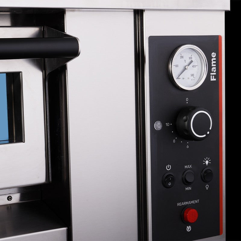 - Pratique, économique et fiable, le four à gaz professionnel pour pizzerias est un modèle très demandé, précisément parce qu'il peut s'adapter dans de nombreux environnements. Sa facilité d'utilisation et les économies d'énergie qu'il assure, l'amène à être choisi par bon nombre de professionnels. Les fours à pizza professionnels de la gamme FLAME sont alimentés au Méthane ou au GPL. La forme particulière des déflecteurs en acier permettent de diriger la chaleur vers le dessus perforé de la chambre, rayonnant ainsi sur la pizza. Cela recrée la même dynamique typique des fours à bois, mais sans l'utilisation de charbon et en toute sécurité. Les brûleurs et la technologie Activestone permettent d'avoir une cuisson uniforme dans toute la chambre, en optimisant les temps et la consommation d'énergie. Le four à gaz FLAME est certifié et testé tous les ans. De plus, contrairement aux autres produits similaires, il nécessite très peu d'entretien. Il dispose d'une ampoule 12 V et peut-être superposé (jusqu'à 2 unités individuelles, pour une utilisation sous un autre four ou sous une hotte d'aspiration).