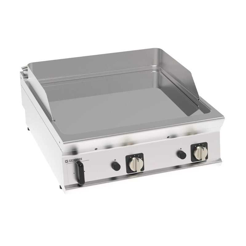 Élément top plaque gaz à snacker lisse chromée - 2 zones - Tecnoinox - FTC8G91