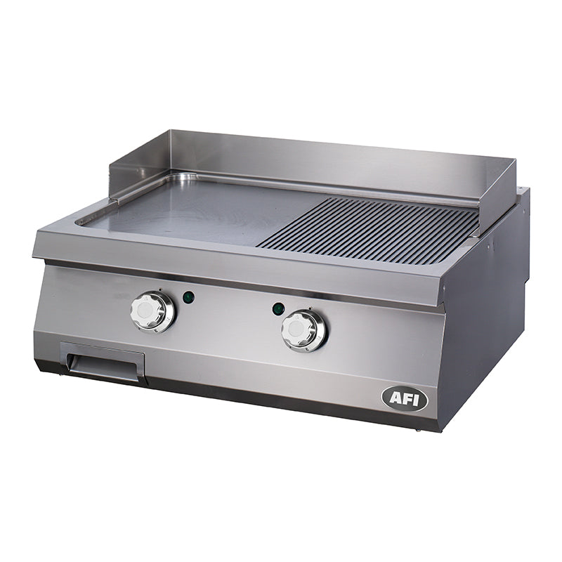 PLAQUE À SNACKER ÉLECTRIQUE - GAMME 900 - DOUBLE SEMI-LISSE ET SEMI-NERVURÉE - CHROME