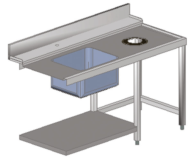 PLONGE ENTRÉE DROITE 1500 MM + TROU VIDE DÉCHETS