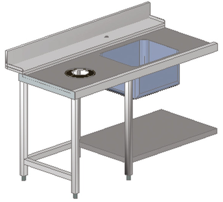 PLONGE ENTRÉE GAUCHE 1500 MM + TROU VIDE DÉCHETS