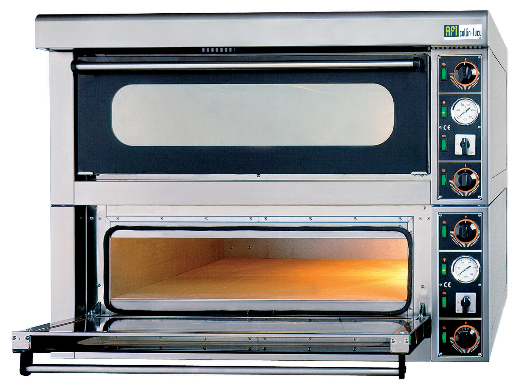 Électrique Résistances blindées Chambre entièrement réfractaire 450°C Sole de four en pierre réfractaire Cheminée d’évacuation des vapeurs de cuisson Façade inox Carcasse en acier laqué brun Isolation renforcée Contrôles thermostatiques séparés pour sole et voûte (2 thermostats de 450°) Pyromètres Porte vitrée Éclairage Tri 400 V SUPERPOSABLE Pizzas : 2 x 6 Puissance (kW) : 14,4 Poids (kg) : 243 Dim. chambre (mm) L x P x H : 670 x 1035 x 145 Dim. (mm) L x P x H : 1010 x 1470 x 770 . Four à pizza Luxe 2x6 pizzas.Parfait pour toutes les cuisines professionnelles