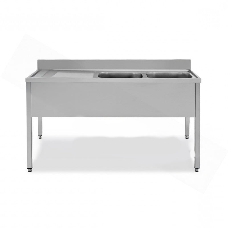 PLONGE INOX AVEC 2 ÉVIERS À DROITE - SÉRIE 600 - LONG. 1600 MM