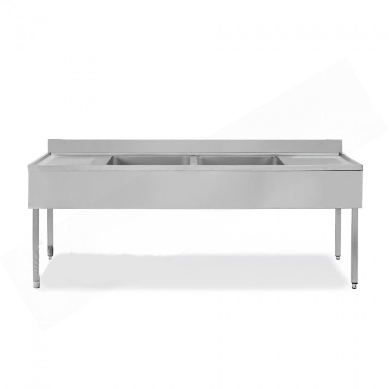 PLONGE INOX AVEC 2 ÉVIERS ET ÉGOUTTOIRS - SÉRIE 700 - LONG. 2000 MM