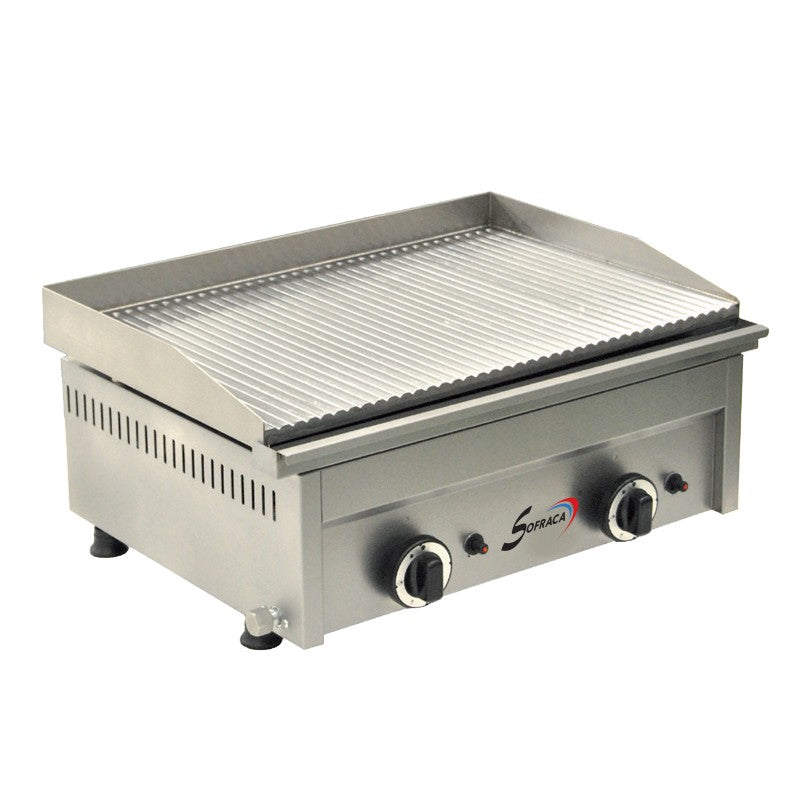 Plaque hamburgers acier inf. rainurée - Gaz - 2 brûleurs - NR600