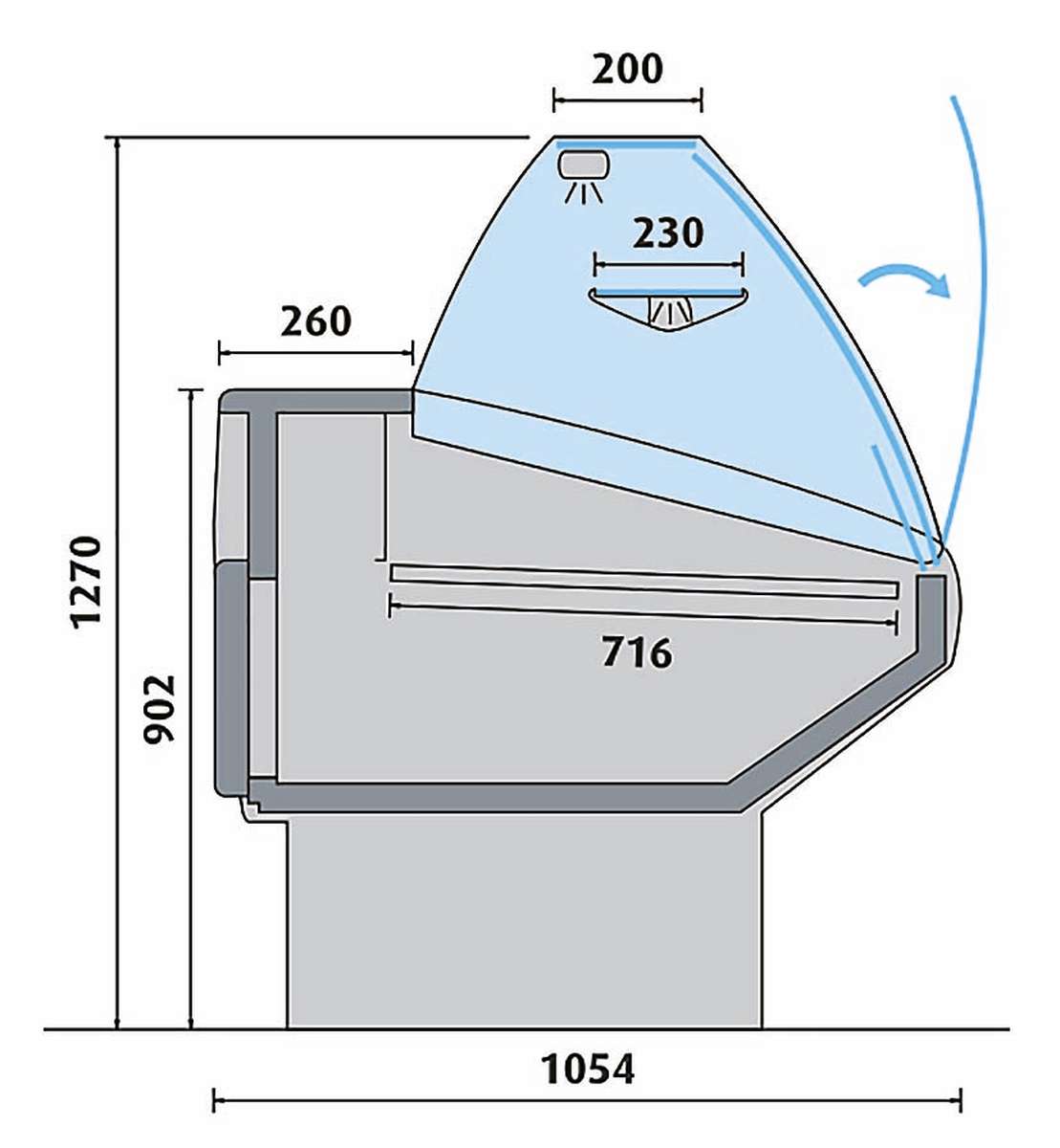 COMPTOIR D'EXPOSITION - VITRAGE BOMBÉ - PROF 1054 MM - FROID VENTILÉ
