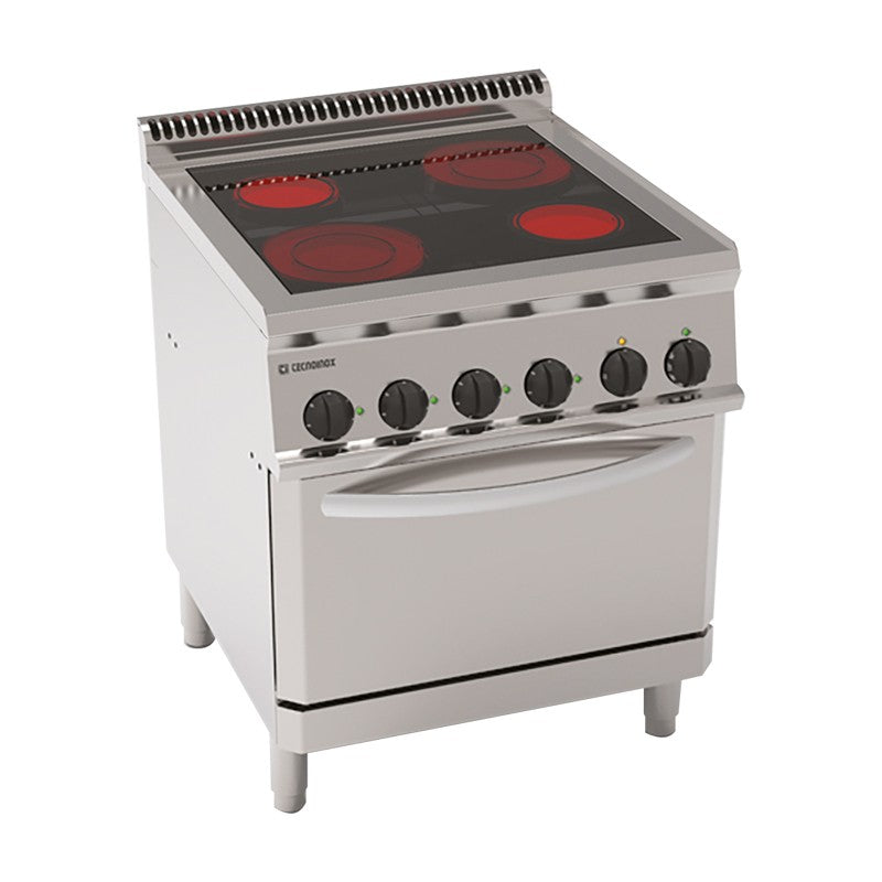 Tecnoinox - Fourneau dessus électrique sur four statique électrique GN2/1 - 4 plaques vitrocéramiques - Gamme 700 - PFC70E7