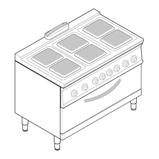 Description du Fourneau dessus électrique sur four électrique extra large statique - 6 plaques carrées - PFSX12E7 - Tecnoinox