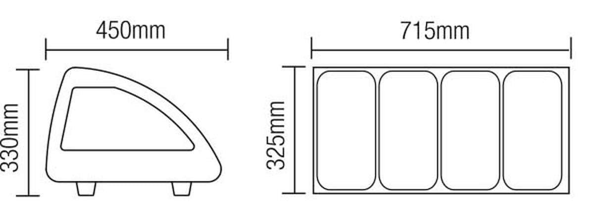 Gaz réfrigérant R134a Température 0°C/12°C Éclairage LED interne brillant sur le dessus Contrôleur de température numérique et affichage Verre incurvé avant Portes coulissantes Système de refroidissement direct Dégivrage automatique Évaporateur supérieur avec bassin pour recueillir la condensation Option : boîte lumineuse pour publicité Prévu pour bacs de 40 mm de profondeur Livrés sans bacs GN Capacité : 4 bacs GN 1/3 Puissance (W) : 160 Poids (kg) : 33 Dim. (mm) L x P x H : 1131 × 450 × 330 . Vitrine a poser portes coulissantes hauteur 330mm.Parfait pour toutes les cuisines professionnelles