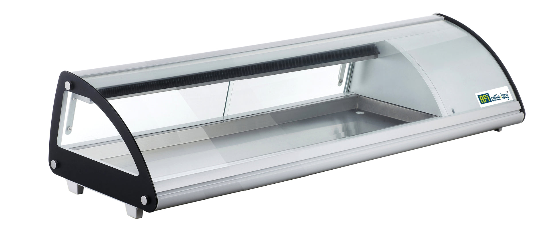Gaz réfrigérant R134a Température 0°C/12°C Éclairage LED interne brillant sur le dessus Contrôleur de température numérique et affichage Verre incurvé avant Portes coulissantes Système de refroidissement direct Dégivrage automatique Évaporateur supérieur avec bassin pour recueillir la condensation Option : boîte lumineuse pour publicité Prévu pour bacs de 40 mm de profondeur Livrés sans bacs GN Capacité : 5 bacs GN 1/3 Puissance (W) : 160 Poids (kg) : 36 Dim. (mm) L x P x H : 1307 × 450 × 330 . Vitrine a poser portes coulissantes hauteur 330mm.Parfait pour toutes les cuisines professionnelles