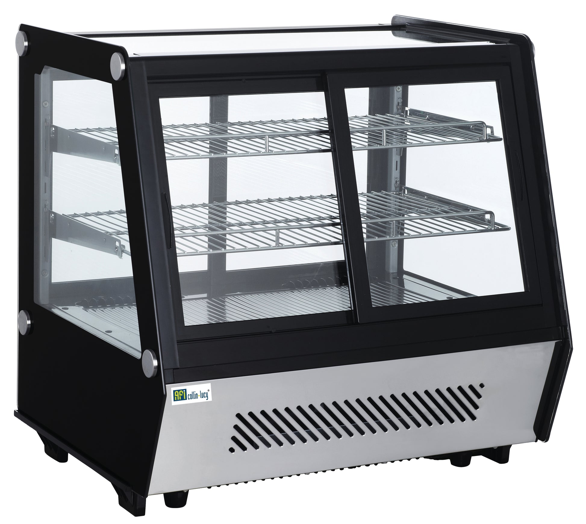 Vitrines droites Double vitrage 4 faces Gaz réfrigérant R134a Température 0°C/+12°C Condenseur sans entretien Clayettes réglables en hauteur Régulateur de température réglable Dégivrage automatique Système de refroidissement ventilé Éclairage LED Portes coulissantes Ambiance de fonctionnement à 25°C et 60% d’humidité Volume (litres) : 125 Puissance (W) : 160 Poids (kg) : 54 Dim. clayettes (mm) : 636 x 335 - 636 x 367 Dim. (mm) L x P x H : 702 x 568 x 686 . Vitrine a poser.Parfait pour toutes les cuisines professionnelles