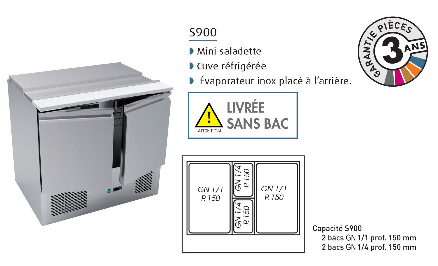 - Équipement essentiel dans une cuisine professionnelle, ce meuble saladette est idéale pour le stockage des ingrédients utiles à la préparation de salades, sandwichs et hamburgers. Cette mini saladette professionnelle permet de stocker des bacs gastronormes sur le dessus, afin d'accéder directement aux différents ingrédients.