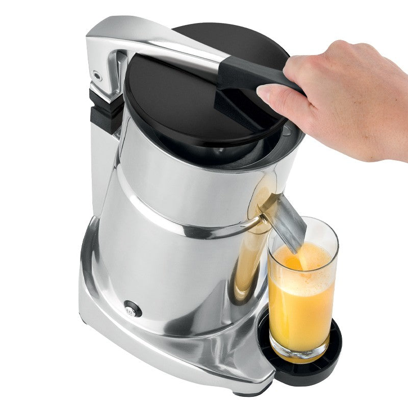 - Il permet de presser des agrumes et des citrons automatiquement grâce à son moteur 1 vitesse asynchrone. Il dispose d'un système de sécurité breveté pour une durée de vie garantie. Sa poignée sur le dessus permet de presser l'aliment facilement. Le nettoyage est très facile, avec sa cuve en acier inox extractible aisément.