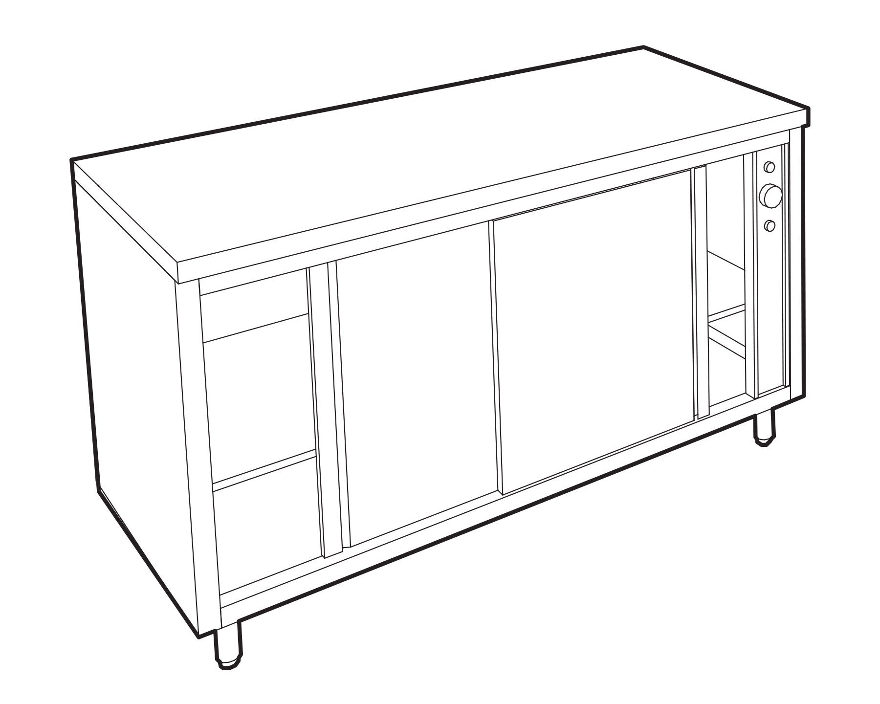 Description du Meuble central inox chauffant profondeur 700 mm - Longueur 1600 mm - Simple face - TCH16T
