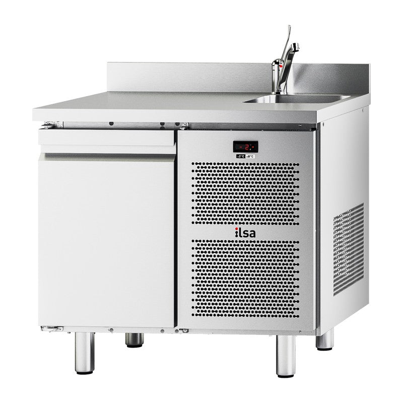 Table réfrigérée positive -2/+8°C avec évier - 1 porte - Avec dosseret - NEOS - TGA71PEV - ILSA