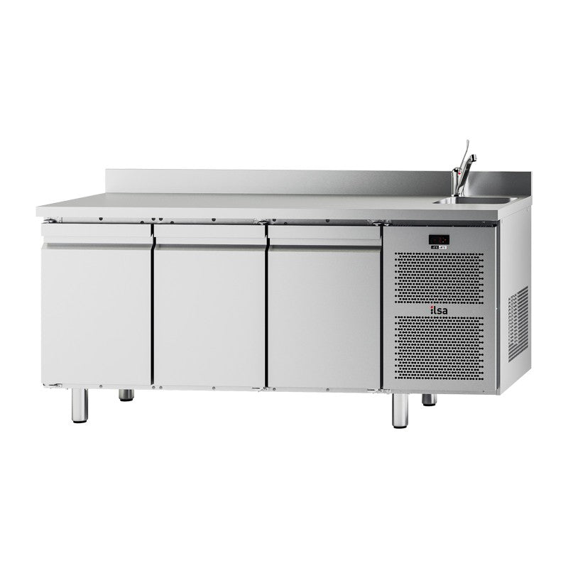 Table réfrigérée positive -2/+8°C avec évier - 3 portes - Avec dosseret - NEOS - TGA73PEV - ILSA