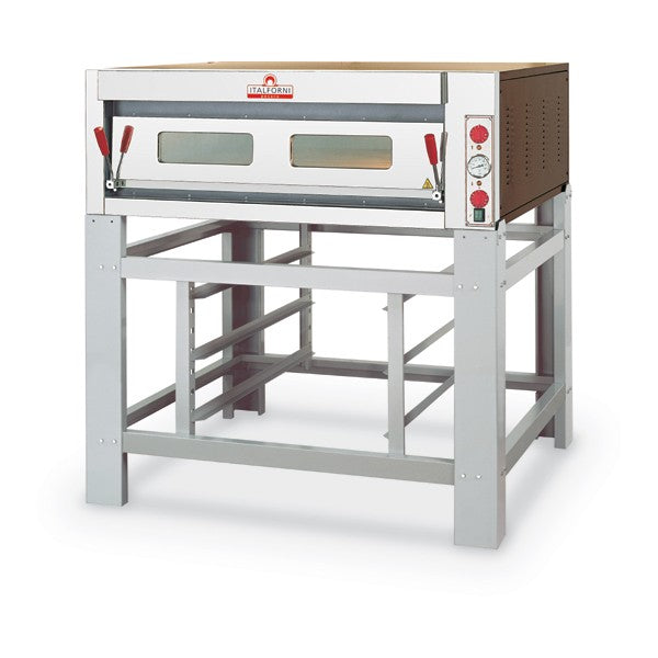 - Ce four à pizza de la Série TK de ITALFORNI avec finition extérieure inox est équipé d'une sole en pierre réfractaire épaisseur 14 mm, d'une porte à ouverture contrebalancée, de résistances blindées en acier inox à la voûte (visible) et à la sole (sous la pierre réfractaire), d'un éclairage interne protégé, d'une régulation indépendante de la voûte et de la sole pour chaque chambre et de commandes mécaniques. Température de fonctionnement maxi. : 450°C. Alimentation :400/3/N/T (existe aussi en 230/1/N/T et 230/3/N/T, nous consulter).