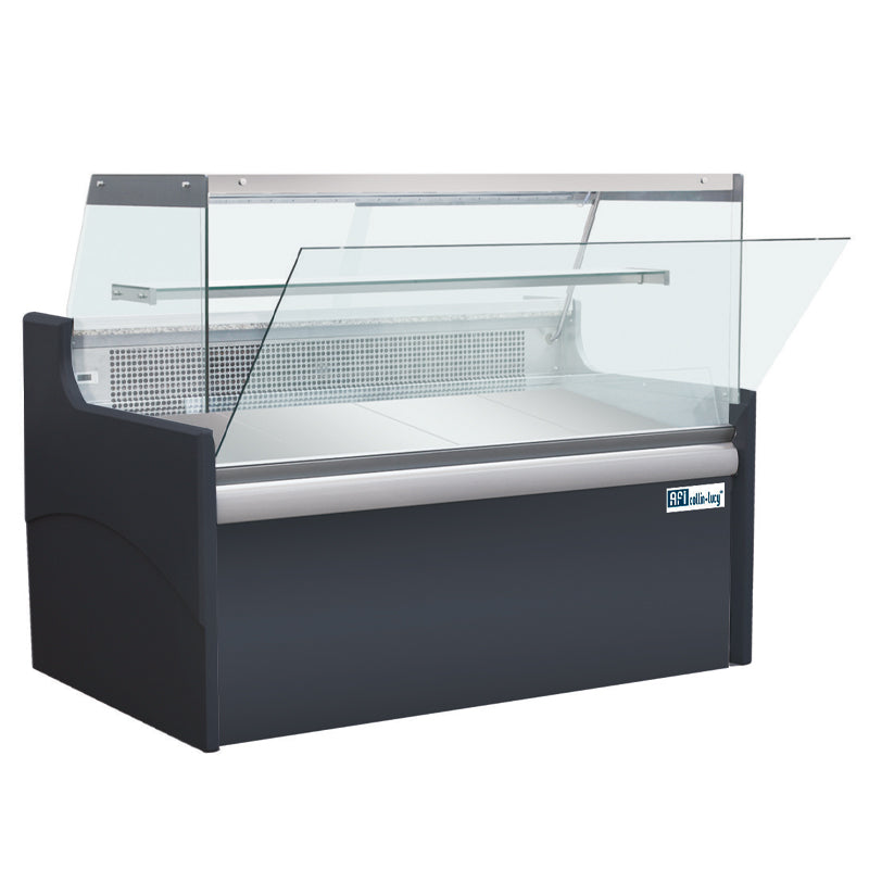 COMPTOIR D'EXPOSITION GRIS - VITRAGE DROIT - PROF 900 MM - FROID VENTILÉ